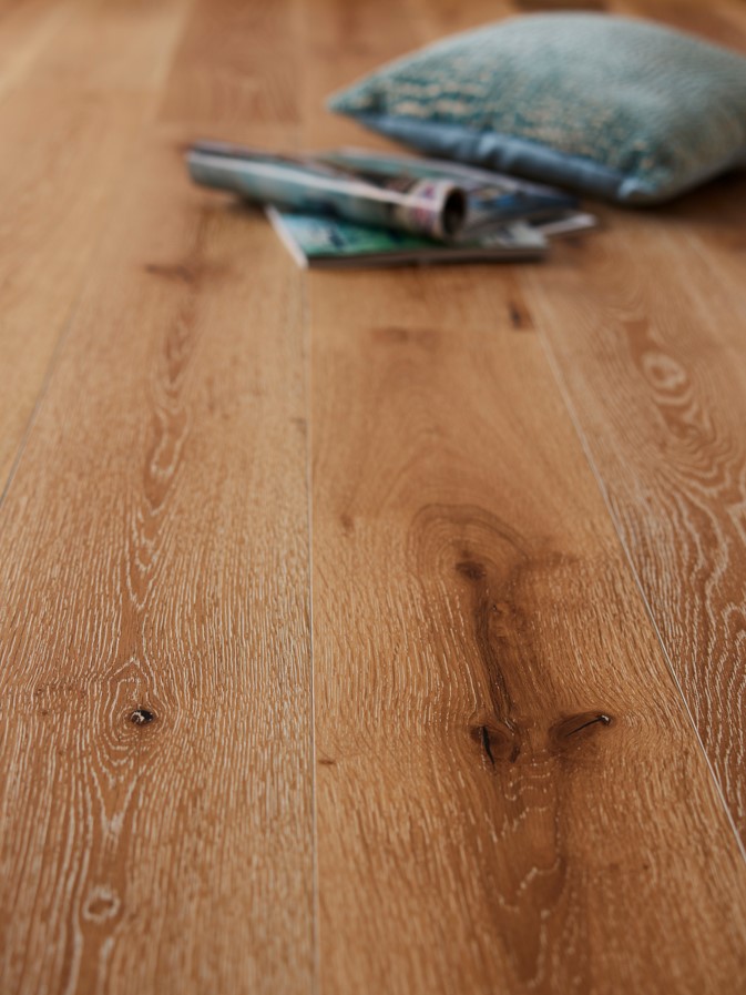 Wood grading describes the level of natural characteristics visible on the surface. ACBD or “Select” grade generally features minimal knots and a cleaner aesthetic, while Character grade includes more noticeable grain patterns and knots without being overly rustic. Rustic grade increases the prominence of knots, colour variation, and lively grain details. Rustic+ pushes these features a little further, enhancing each plank’s individuality for a truly authentic wood floor.